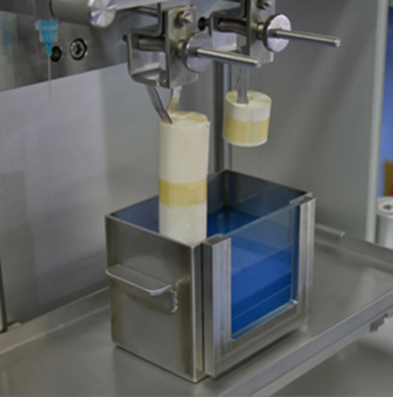 ⑦一定時間後、液槽を下降させて材料を液から出す。
