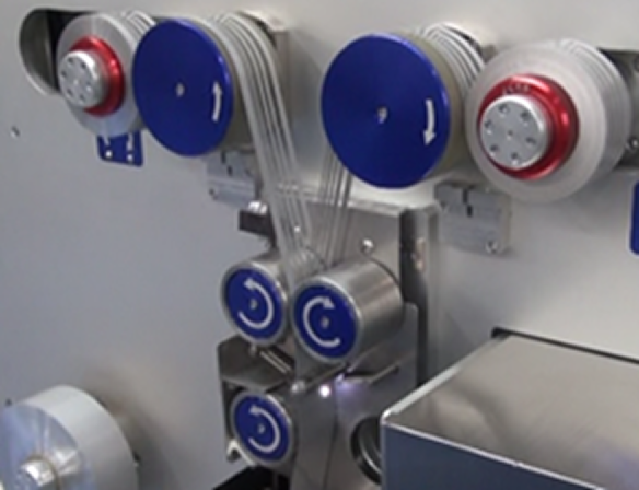 レーザーによりアルミ箔(または銅箔)を切断する装置。1㎜幅の切断も可能。