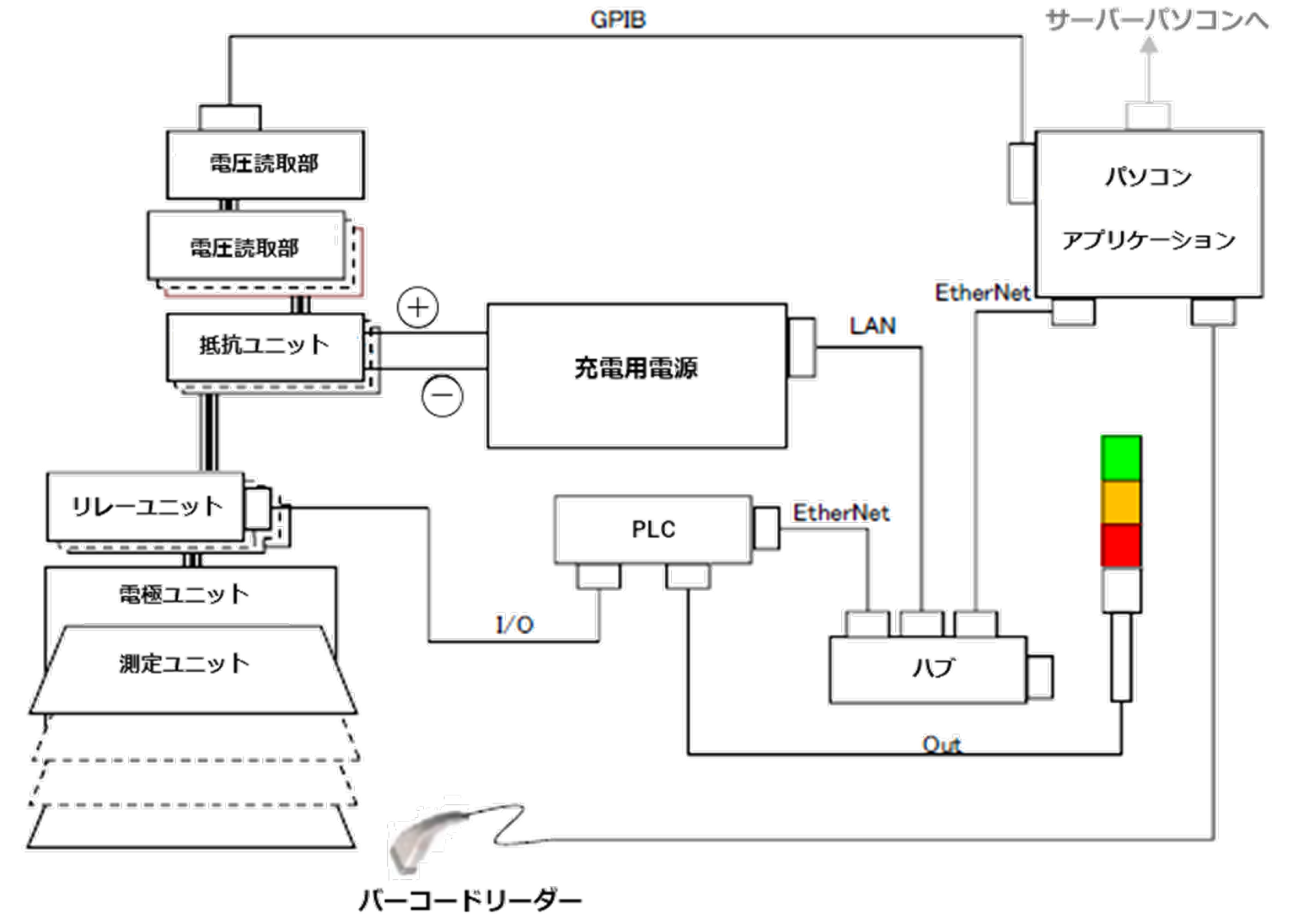 ※システムを増設した場合、測定値、結果、良否判定をサーバーパソコンへデータ保存も可能です。